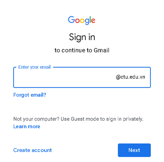 Bước 1: Trên Google Chrome Đăng nhập vào hệ thống email của Trường