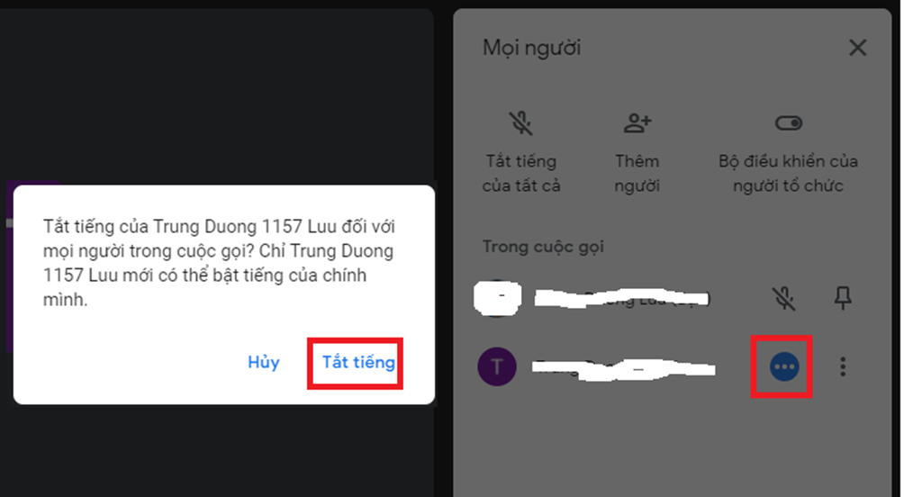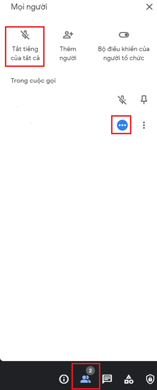 Chọn nút Hiển thị tất cả mọi người sau đó tùy tình huồng có thể: Tắt tiếng của tất cả hoặc Tắt tiếng của một người cụ thể nào đó