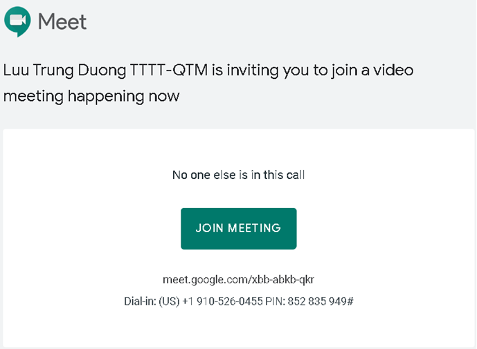 Thành viên được mời sẽ nhận được thông báo qua email và nhắp chuột vào Join meeting, nếu nhận được liên kết (URL) thì bấm vào liên kết nhận được