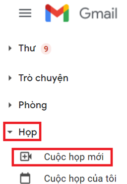 Có thể chọn Họp/Cuộc họp mới ở góc dưới bên trái màn hình email