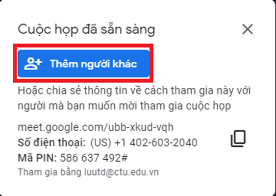 Bước 5a: Mời thành viên tham học/họp bằng cách chọn Thêm người khác